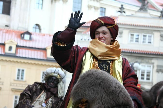 In Prague, the occasion is marked by a festive annual processional led by costumed kings on camels, who are accompanied by drummers and trumpeters.