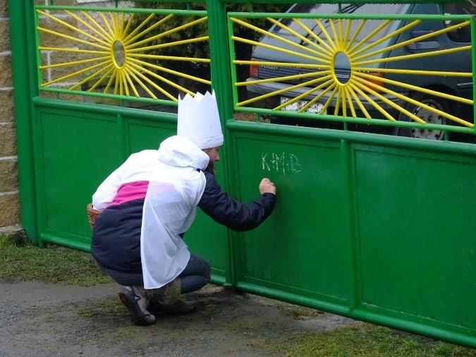 Following the visit, the letters K + M + B are chalked onto the doors of visited homes – the initials stand for the names of the wise men Kašpar, Melichar, and Baltazar or the Latin saying Christus mansionem benedicat (“May Jesus Christ bless this house”), with the crosses representing the Holy Trinity.