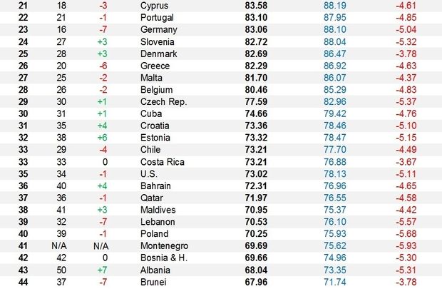 The Czech Republic is also ranked ahead of the USA, which shows up at #35 on the list.