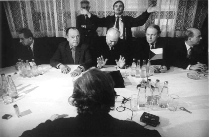 Similar sized crowds would gather under the balcony during the days that followed, eager to hear any updates on news of talks between the Civic Forum and the government.