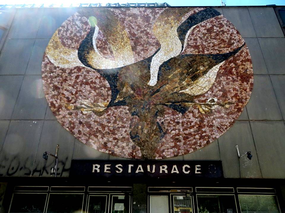 Kulturní dům Eden was built in 1980, shortly after the adjacent Vlasta housing project was completed. KD Eden featured a 291 seat cinema, 300 seat restaurant and main hall for 1,500 people. It was designed by architects Hana Pešková and Dalibor Peška.