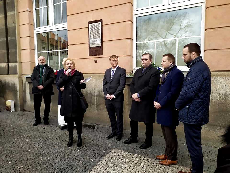 Dissident Politician and philosopher Václav Benda lived and died at Karlovo náměstí 287/18. There is metal image of his face on the plaque there.
