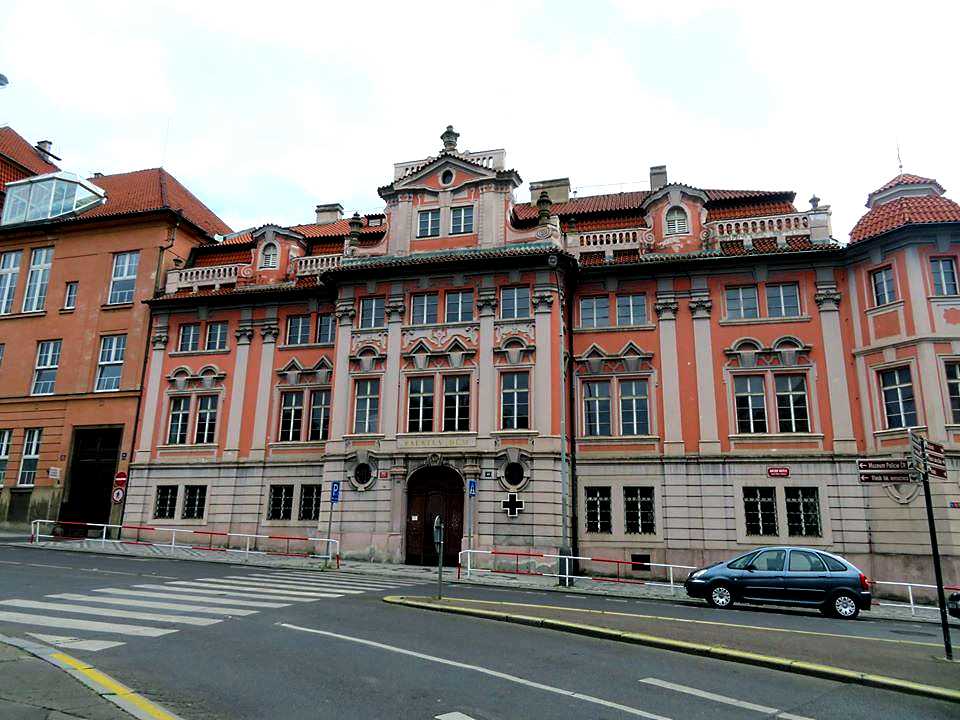 The baroque pink and gray palace is now used by the First Medical Faculty of Charles University and the University Hospital. The original building was built before 1378, and it was remodeled and expanded several times. The current look dates to 1820. It was slightly damaged during an Allied bombing raid in World War II.