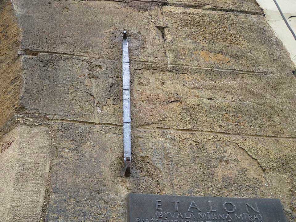 Next to the main entrance to the hall’s tower is a metal rod embedded in the stone. This was New Town’s official measuring rod for the Prague cubit, or loket, which measures 59.3 centimeters. It was used to settle disputes over lengths of cloth or other measurable items. Another measuring rod can be found near Prague Castle on door of the historical Hradčany Town Hall.