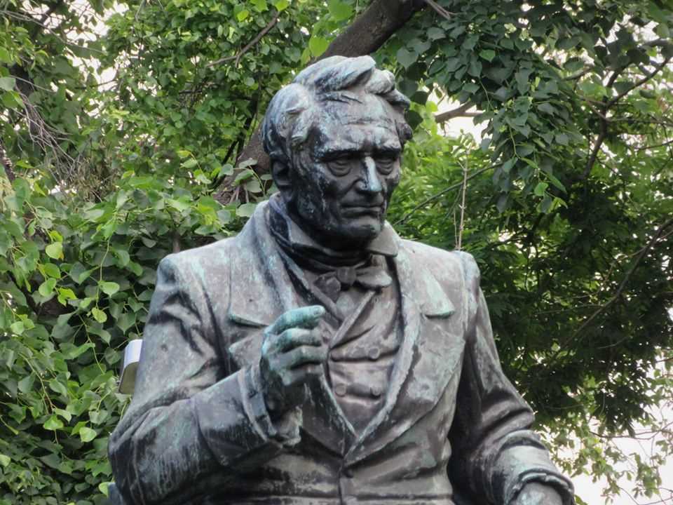 In the center of the park is a sculpture of a seated Jan Evangelista Purkyně. The Czech biologist coined the word “protoplasm” for the substance inside cells. He also wrote and translated poetry,
