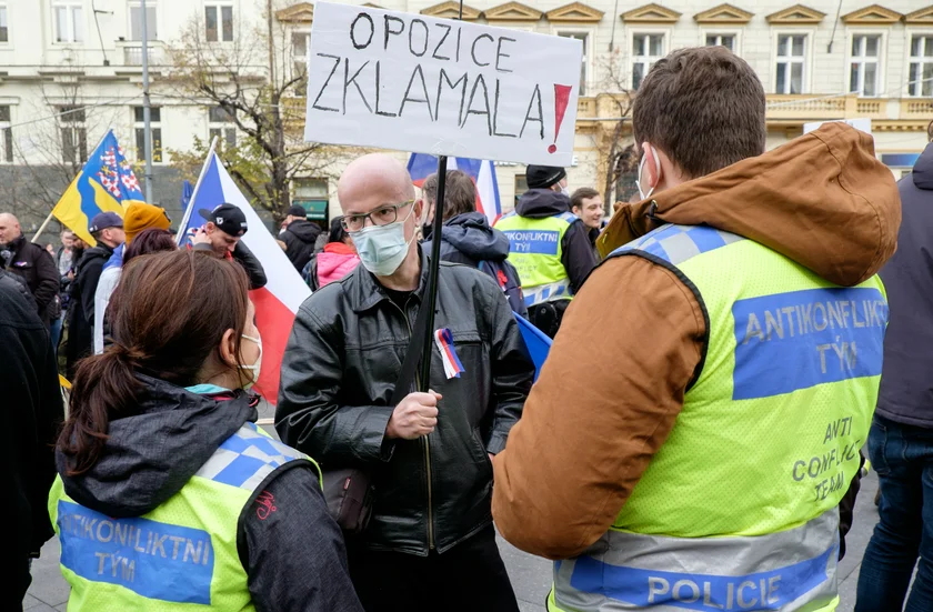 On the 31st anniversary of the fall of communism in Czechoslovakia, an estimated one thousand protesters paraded through Prague yesterday, demonstrating against the Czech government's anti-pandemic lockdown measures.