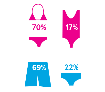 ● 75 percent of Czech women found that shopping for swimwear affected their self-image negatively although 70 percent said that they tend to choose a bikini-style over a one-piece (17 percent) suit.