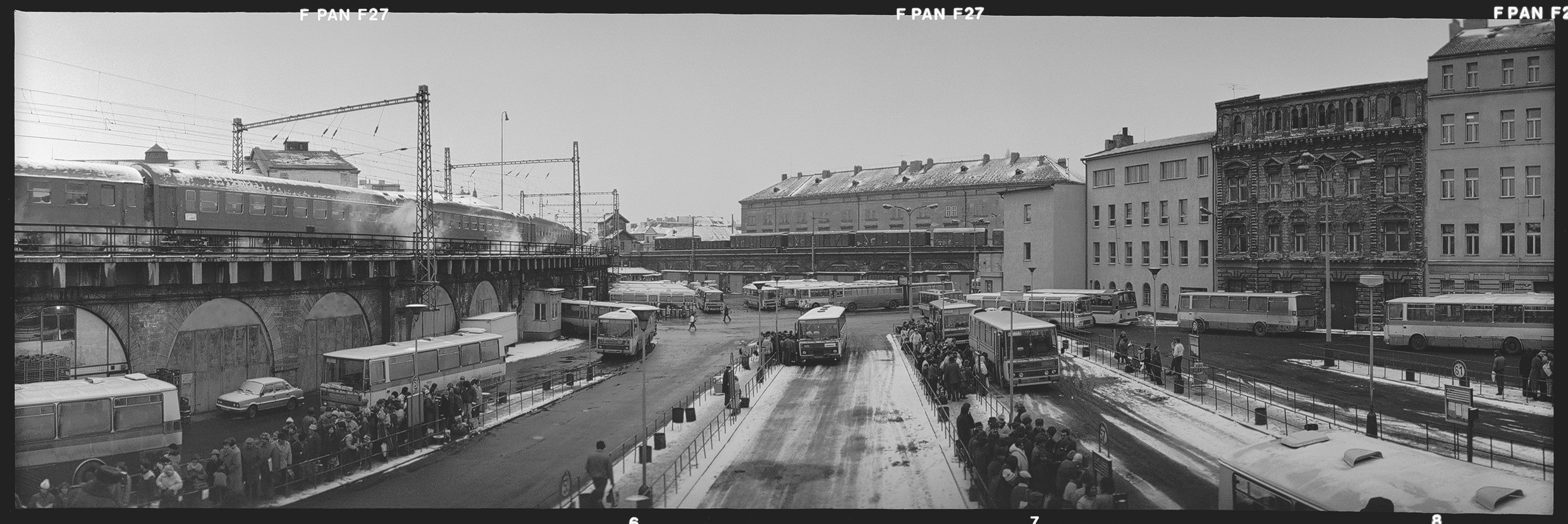 Lutterer favored the “unpretty” face of Prague: miles of corrugated steel fences ringing abandoned factories or drab lines of passengers crowding on the platforms in the pit of the Florenc bus station on the day before Christmas.