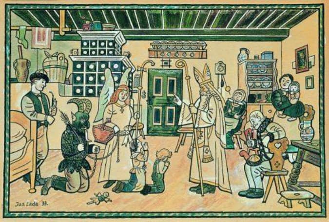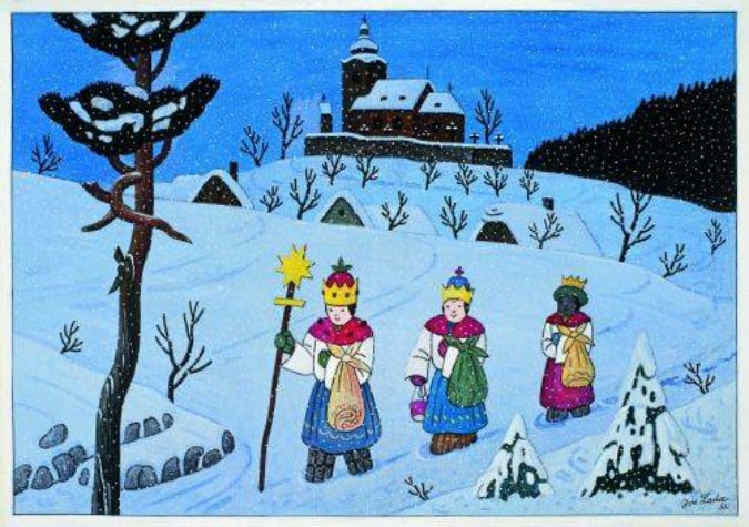 Best known for illustrating Jaroslav Hašek’s World War I novel The Good Soldier Švejk, Czech artist Josef Lada is synonymous with Christmas in the Czech lands, his snowy Czech villages and cozy winter feasts annually gracing countless holiday greetings.