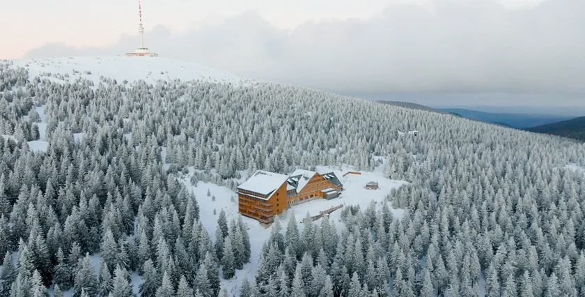 Located on Praděd, in the heart of the Jeseníky Mountains, Hotel Petrovy Kameny offers a unique space for corporate events, weddings, and private celebrations. The hotel can be booked exclusively for your group with an all-inclusive package, featuring a restaurant, wellness facilities, and comfortable rooms. For private events, a panoramic pavilion is also available, offering breathtaking mountain views. Surrounded by pure nature (1,335 meters above sea level), guests can enjoy a variety of activities year-round, including spring landscapes, summer hiking and biking, autumn trails and winter skiing.
