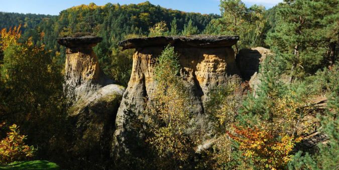 Once the leaves start to turn, there are only a few weeks left to enjoy the autumn colors in the countryside around Prague. And this fall has been particularly mild so far, affording ideal opportunities to head out for the day with a flask of tea and a backpack of sandwiches and explore the myriad hiking trails that connect so much of the Czech Republic. Here’s a roundup of several walks that give some of the best views of the changing landscape, so make sure you have a good pair of trek shoes and a Czech Tourist Club map for the area (available at most bookstores, with a good selection at Palác knih Luxor on Wenceslas Square). Check the Idos.cz websitefor train and bus timetables.