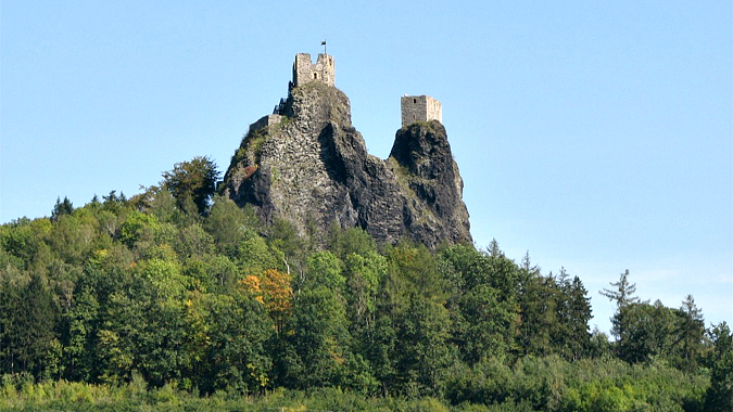 On the edge of Bohemian Paradise (Český ráj), north of Prague, stands one of the country’s most iconic ruins. Fittingly named, Trosky Castle (trosky means ruins) was built in the fourteenth century. Today only the two towers, known as panna and baba, and the 15m tall battlements running between them remain.