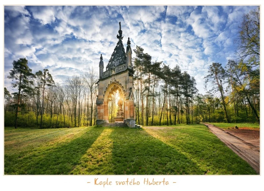 Located in the middle of the Boří forest in the Lednice-Valtice demesne, this neo-gothic chapel is dedicated to the patron saint of hunting, St. Hubert. It was built in 1855, for Alois II. Prince of Liechtenstein, but it’s designed to appear much older than it actually is. During construction, the sandstone blocks used were marked with fictional medieval stonemason’s marks, to lend it an air of authentic antiquity.