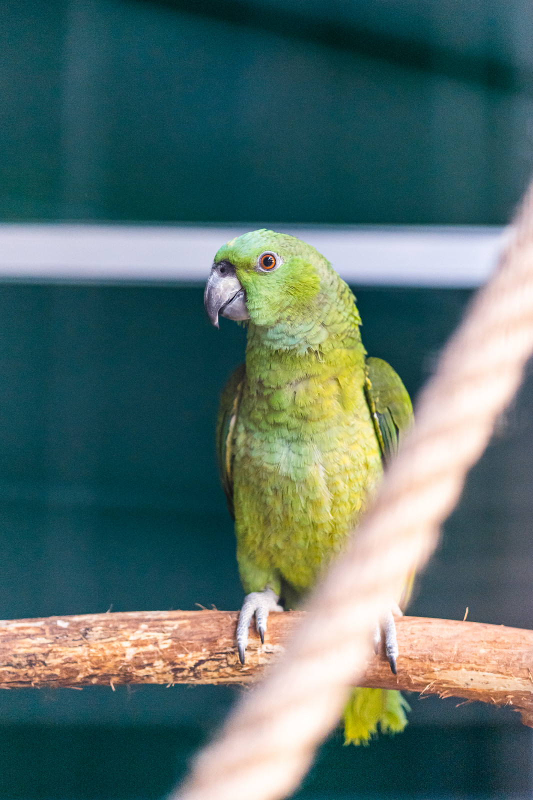 The exhibit illustrates how ecologically grown chocolate makes its way from cocoa plantations to consumers — the parrots are a nod to the fact that the plantation also serves as a sanctuary for exotic animals abandoned by drug cartels.