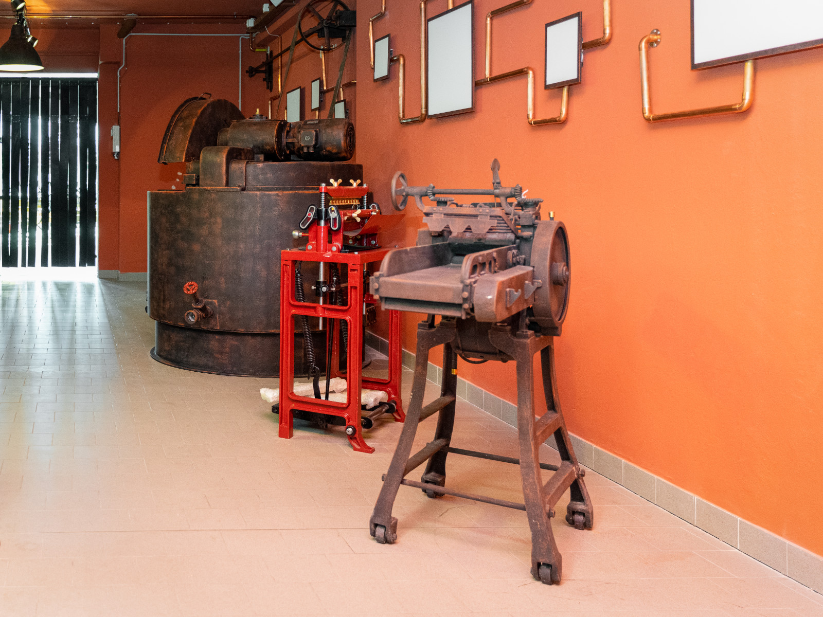 We emerged from the 19th century into the realm of modern-day chocolate production represented by an open industrial kitchen where we glimpsed chocolatiers hard at work on machines that weren’t all that different from their predecessors.