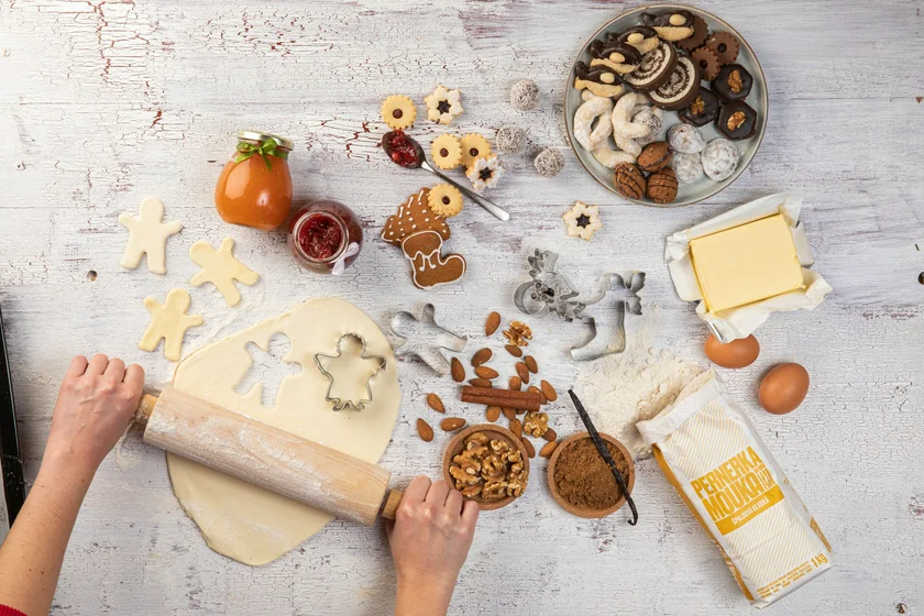 In order to bake your holiday cookies, your shopping list should include a number of essentials. According to Kratochvílová, quality ingredients will make or break your cookies, so it's important to use the best possible ingredients. That means real butter instead of Hera, genuine chocolate instead of cheaper chocolate coating, and organic eggs.