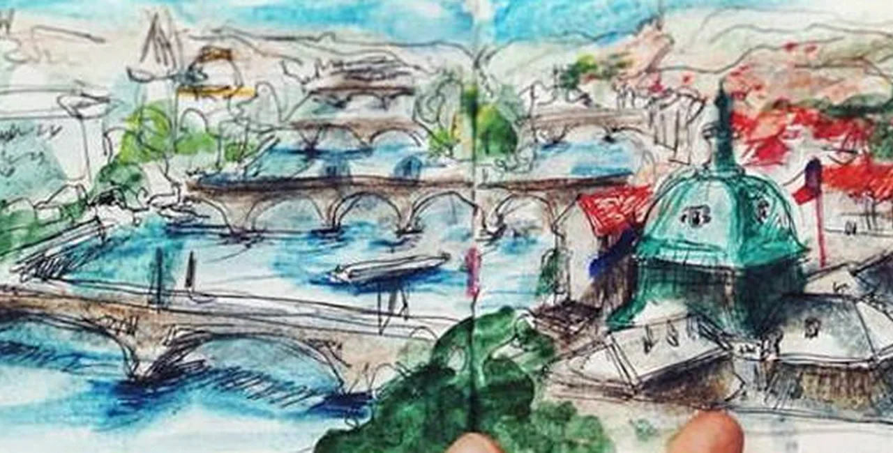 I realized that I wanted to do something for myself. On the last day of the retreat, I came up with the idea to capture that moment. It was a sunny day in a beautiful forest, and I just made a sketch. I told myself that as long as I was traveling, I would do one sketch every day, to be creative and keep myself motivated.