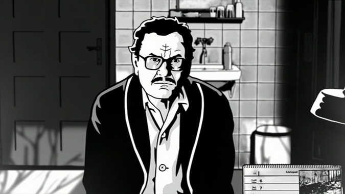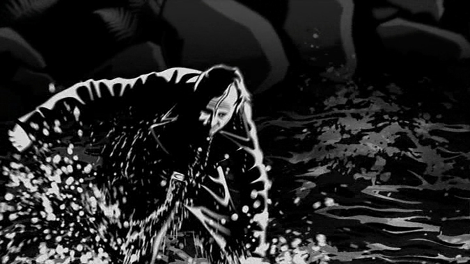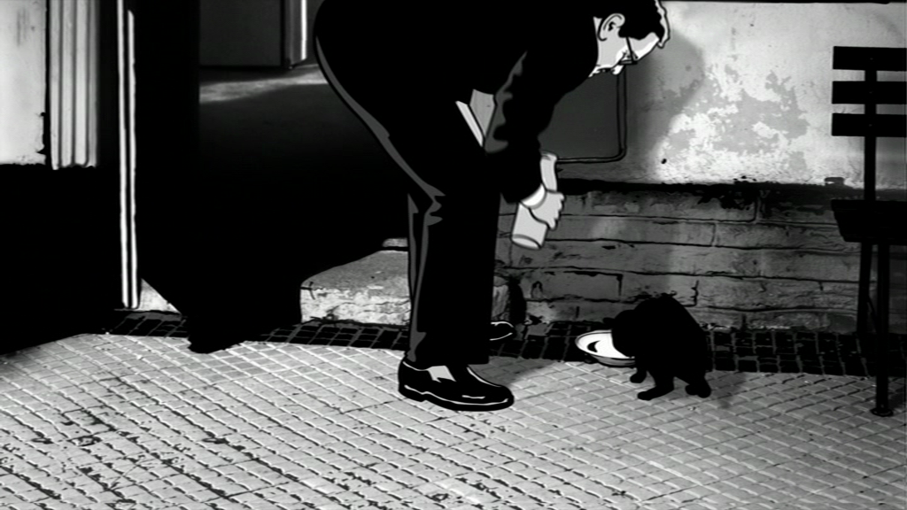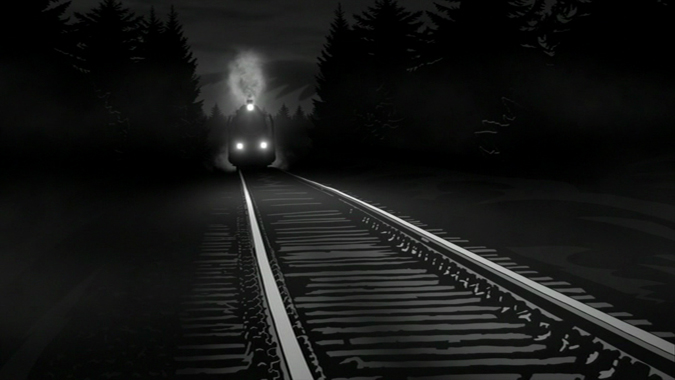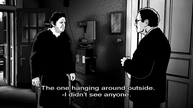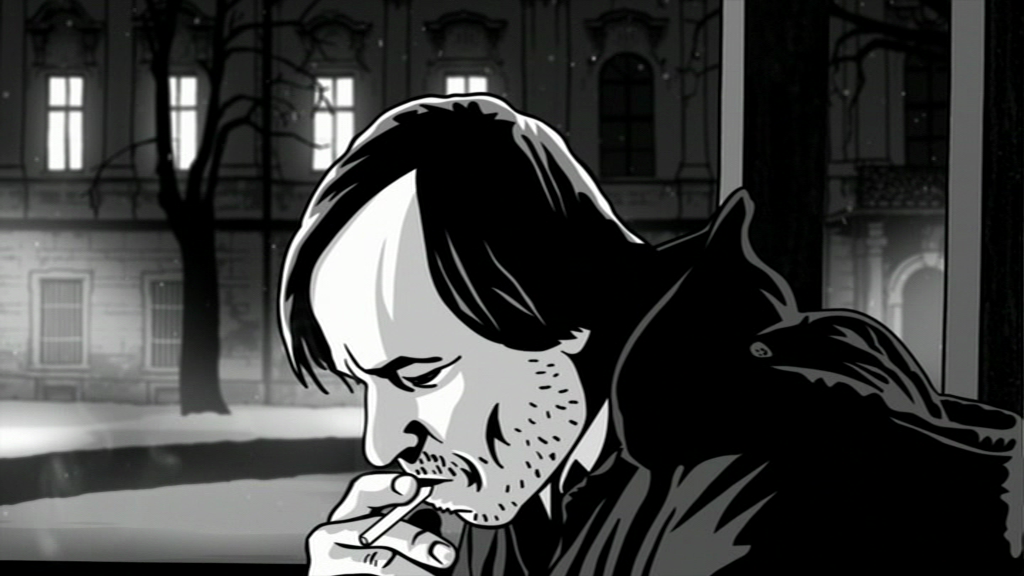 But this much is clear: Alois Nebel is an unqualified artistic success. Combining rotoscoping – shooting live-action footage with actors, and then tracing it over to achieve a kind of animated realism – with a high-contrast black & white palette (using only a few shades of gray), director Luňák has created something that both accurately captures the look of the original graphic novel (by Jaroslav Rudiš & Jaromír 99) and is visually striking in its originality.