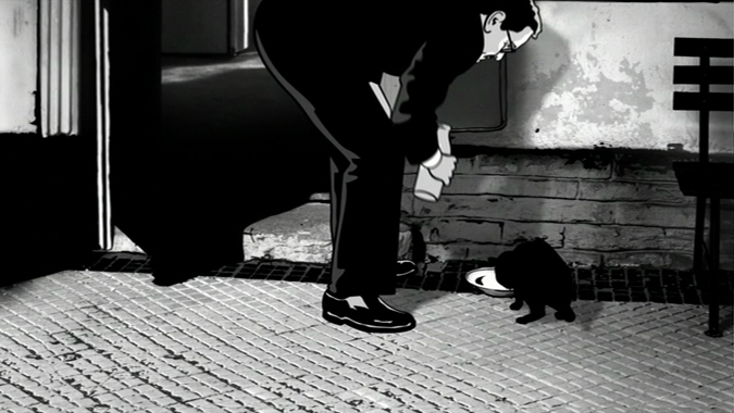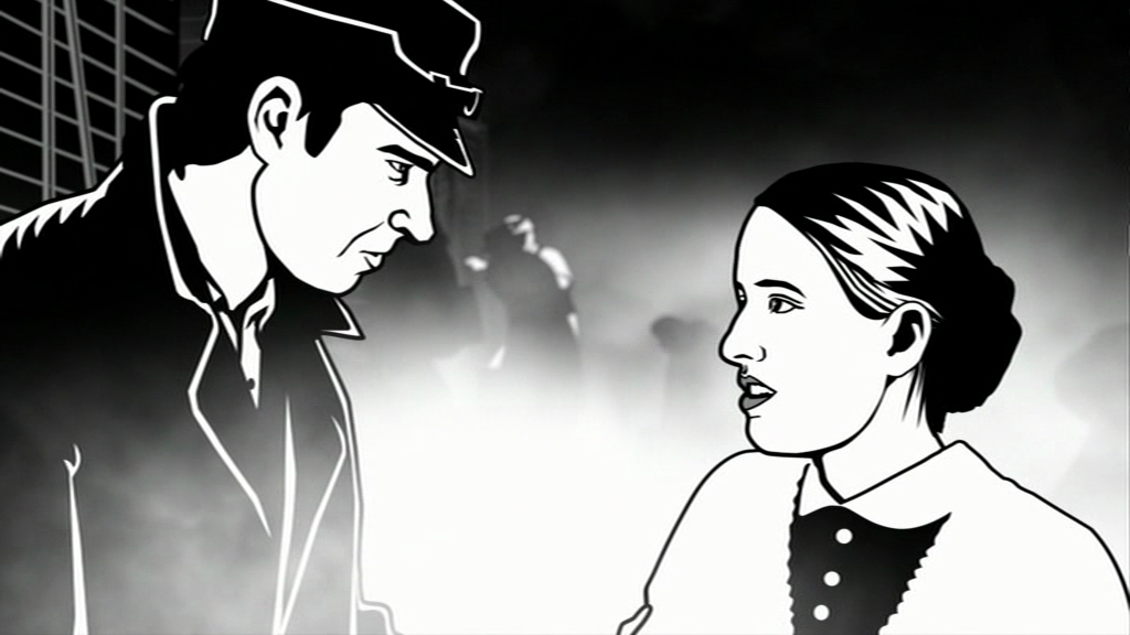 The look of the film, however, almost seems at odds with the nature of its story. Rotoscoping has traditionally been employed to bring a sense of realism to what otherwise may seem too other-worldly; while used in mainstream animation since the silent era, its modern use was pioneered by Ralph Bakshi (Wizards, The Lord of the Rings), and it has been more recently used by Steven Soderbergh in Waking Life and A Scanner Darkly. The closest comparison to the look of Alois Nebel I can think of is the futuristic sci-fi thriller Renaissance.