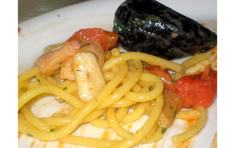 I had Penne All´Amatriciana. The tomato flavor stood above the barely noticeable pancetta. But there was a respectable sharpness from the chili peppers.