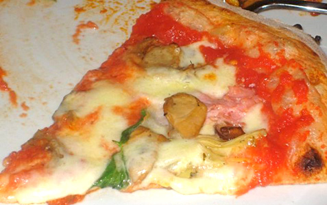 The slice had a small amount of mushrooms, ham, and artichokes. But as I indicated before, with these pizzas, less is more.