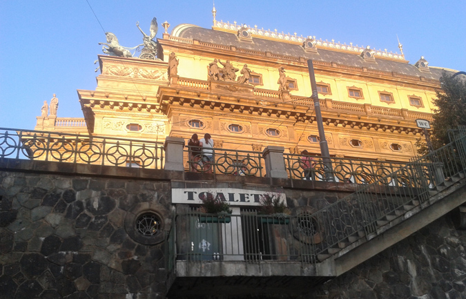 Right smack-bang next to one of the most recognisable buildings on Prague’s skyline, sits the first entry to our list of memorable lavatories.