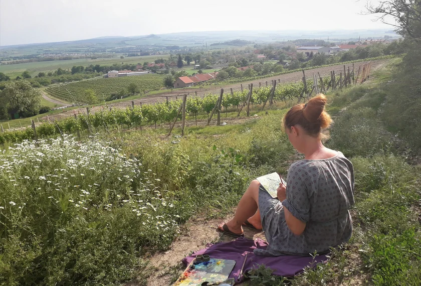 Rutherford, a Morava Czech and her husband, Mark, a California native, moved to Mikulov six years ago to paint and make wine. Their resulting business venture, Art Wine Mikulov, invites visitors to drink in the beauty of the region – both literally and figuratively – via a unique travel experience that pairs painting in the open air with wine tasting.