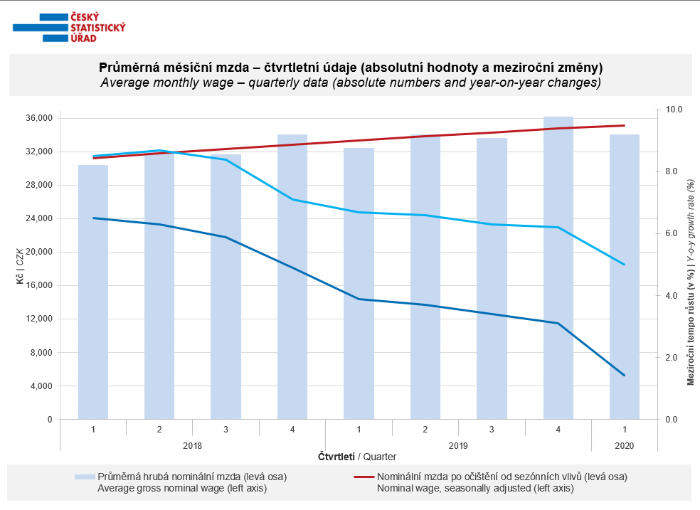 Because the data only takes into account numbers through March, however, effects of the coronavirus pandemic on average salaries in the Czech Republic are yet to be seen. Data for Q2, which should be published by September, could paint a different picture.