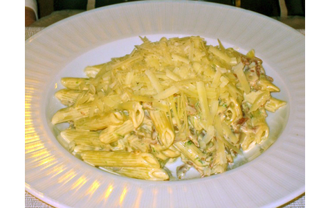 The pasta is made with spicy Ventricina salami, red onion, and a cream sauce. The huge portion was properly cooked, and V said she liked it. The Italian salami was too salty for my taste. But she said she enjoyed it again the next day for lunch.