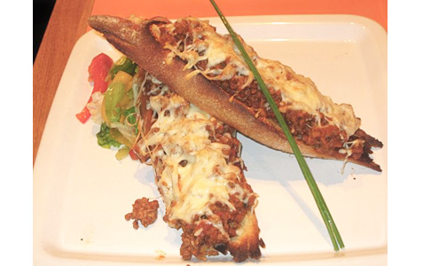 With that meal, I started with the bruschetta bolognese (69 CZK). It was described as ground beef with tomato on homemade Italian-style bread with melted cheese.