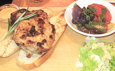 For a main course, I got the pork steak (179 CZK). The Italian bread made its third appearance. On the side, they served grilled vegetables in a pesto.