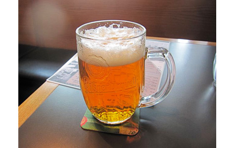 After sitting down, I was satisfied by a half-liter of cold and sharp Pilsner Urquell (35 CZK).