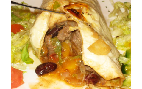 It was really a burrito, with a few red beans, onion, tomato, and even chopped zucchini inside.