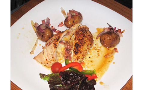 Another person had the chicken with Parma ham and goat cheese along with bacon onion potatoes (265 CZK).