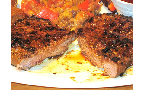 It was heavily seasoned with salt and pepper. I thought it tasted pretty good. G-Man tried it and liked it as well. There was a ratatouille-like side of eggplant, peppers, and onions. Pretty good.