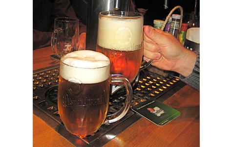 I arrived late, joined the group, and poured myself a Pilsner Urquell. It was 45 CZK for a half-liter, which isn’t a great price, but not over the top for the center of Prague.