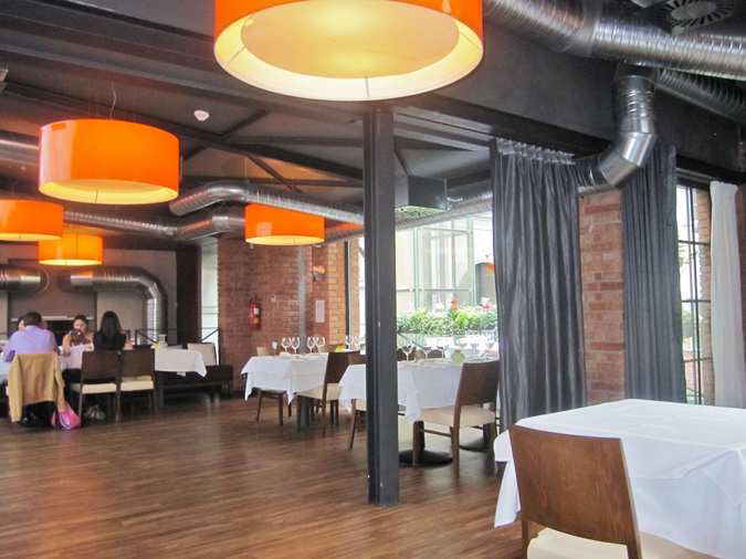 I thought the modern-industrial look worked fairly well. Some dining areas can be made private with the use of curtains on tracks in the ceiling.