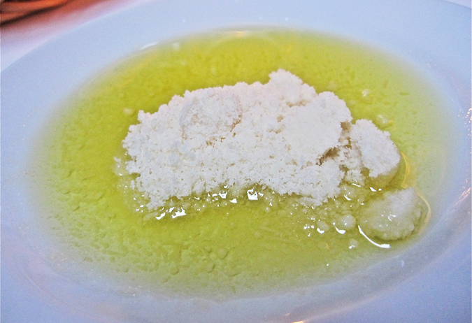 With that, the waiter gave us something we’d never seen before: olive oil with an island of tart, grated Parmesan in the middle.