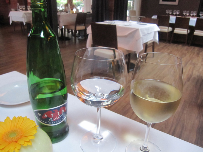 We started with crystal flutes of Pizzolato extra dry prosecco (75 CZK each). We had a big bottle of Mattoni sparkling mineral water (95 CZK). The house wine I had, a Pinot Grigio from Veneto, was dry and light (.2 liter/90 CZK). The Alsatian Pinot Gris was sweeter and less to my taste (.2 liter/130 CZK).
