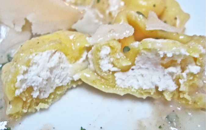 The tortellini were very plump and well-stuffed with snowy-white ricotta.