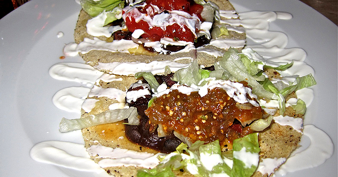 They had different types of salsa. I didn’t really pick up the flavor or texture of the sweet potato. But I really like black beans and the warm corn tacos shells are great. It’s a nice vegetarian option.