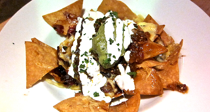 The beef rests underneath black beans, melted cheese, guacamole and sour cream. It sits on top excellent warm corn tortilla chips that keep a lot of their integrity under the heavy ingredients. We both loved it.