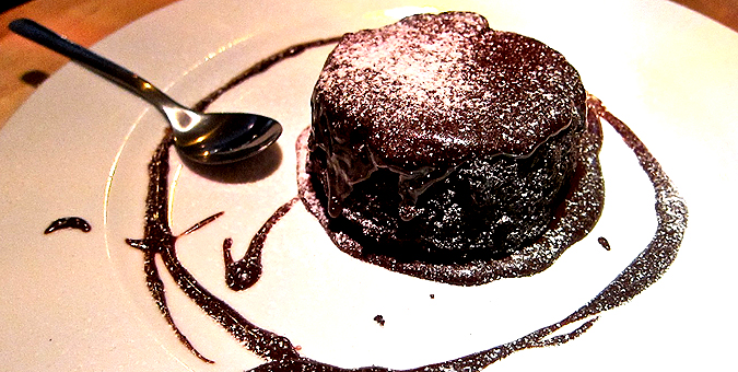 This cake, served warm, was similar to a fondant, but without the liquid center. Instead, the chocolate sauce — real, high-quality stuff — was poured over the top. A great ending.