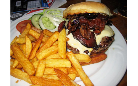 The bacon was top quality stuff, but overcooked at the edges. For me, there was just a little too much melted cheddar cloaking the good quality meat. The bun was strong and nicely toasted, but a little large and out of proportion to the size of the patty.