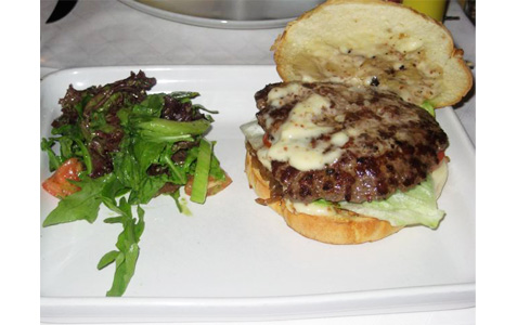This burger has gotten some positive press, but I didn’t like it much. The menu said it was cooked on a “lava grill,” but I could not taste it. The flavor was undistinguished. The beef was cooked well-done, and it was slightly rubbery.