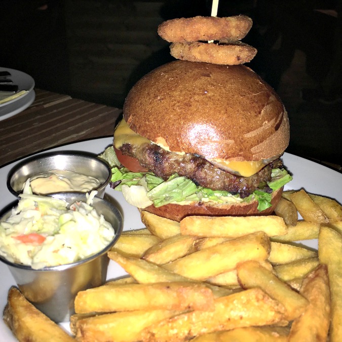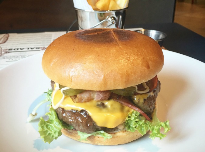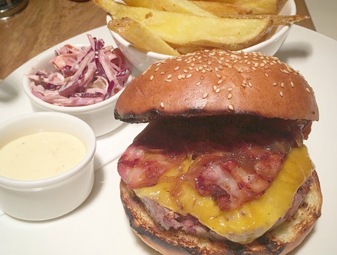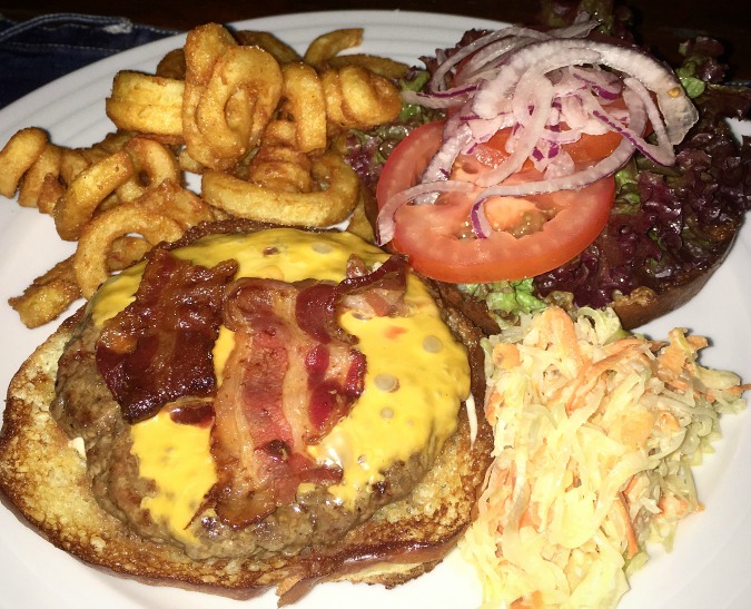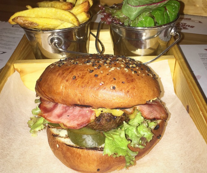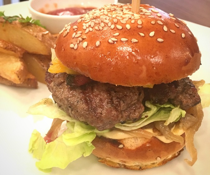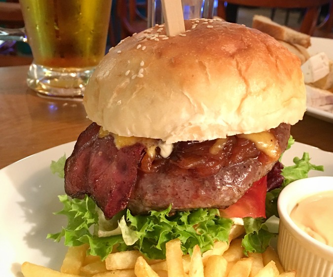 The star attraction of their Black Angus Burger was the intensely smoked flavor of the ground beef prepared on their Josper grill. The loosely packed, coarsely ground patty had the right fat content. The only issue was it was cooked well done instead of the requested medium. There was seasoning in the meat that I couldn’t identify and that made the flavor less classic. They used great cheddar and a quality bun. It was topped with sweet, caramelized onions, and a little too much salty mayo. This tall burger was very messy to eat. As good as it was, I still thought it could be better with bacon, which was not an option. It was 195 CZK when I had it early in 2016, but the online menu says it is now 229 CZK. Comes with great fries.