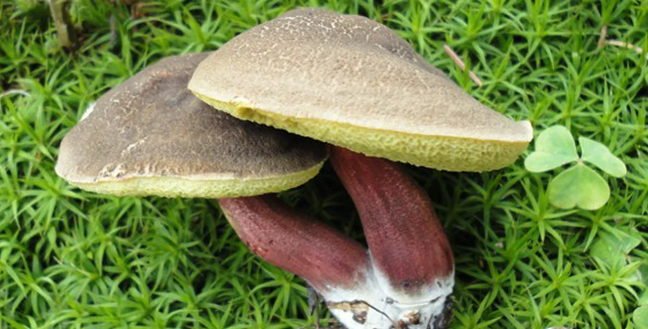 A number of species in the boletus genus stain blue when cut. Some, like the lurid bolete, are edible when cooked. However, others such as the devil’s bolete and the red pored bolete are poisonous. If you are not experienced I’d avoid the blue-staining ones.