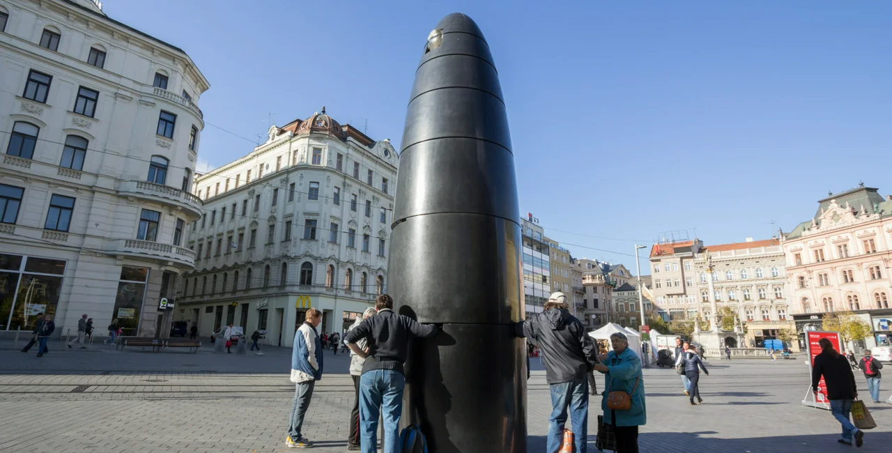 The non-traditional timekeeper (frequently likened to a giant vibrator or penis), typically spills marbles from one of its four openings every day at 11 am. Now following a period of repairs, it’ll be getting its balls back next week for good, reports Novinky.