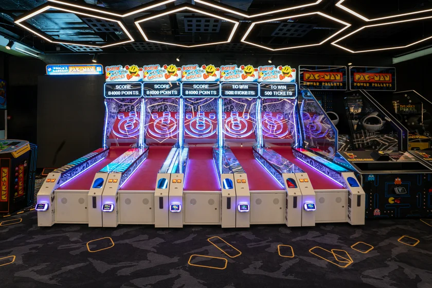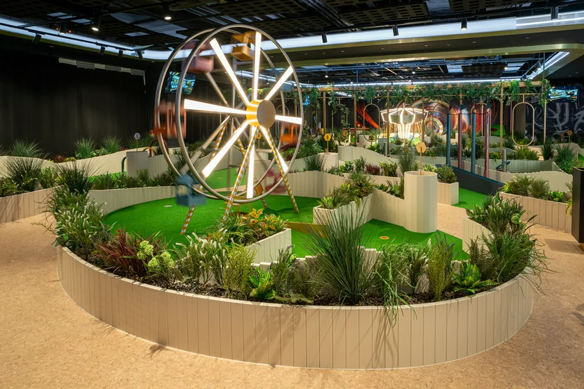 At LEVELS, the center’s arcade and entertainment area, you can throw axes, shoot basketball hoops, or face off with a friend in a virtual motorcycle race. Formula 1 fans can try their speed skills with a racing simulator, while more grounded gamers can putt their way through an indoor mini-golf course covering 378.61 square meters.