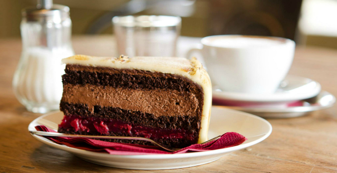 As I’d just eaten Sunday lunch, there was only one thing on my mind – dessert. I was immediately drawn to the Kuba cake (39kč), which has nothing to do with Fidel Castro and everything to do with lashings of chocolate. As a rather pathetic attempt at simultaneous detoxing, I also order a green tea.